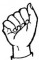 На ћирилици написано БОГДАН СТРИЖАК састоји се из 13 слова [?]. Исписано ћириличном једноручном азбуком за глувонеме: